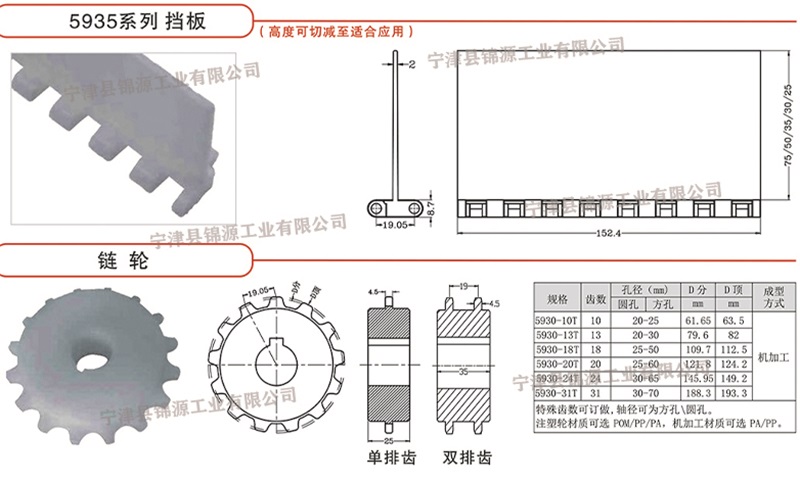 PP、POM材質(zhì) 5935型廣泛應(yīng)用在食品加工、烘干、冷卻、包裝、蓄電池、物流、水產(chǎn)類等自動化生產(chǎn)線